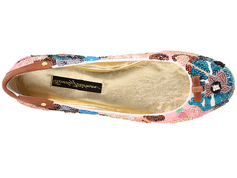 This Beverly Feldman? ballet flat has a sequin and bead-detailed fabric upper with textile trim.