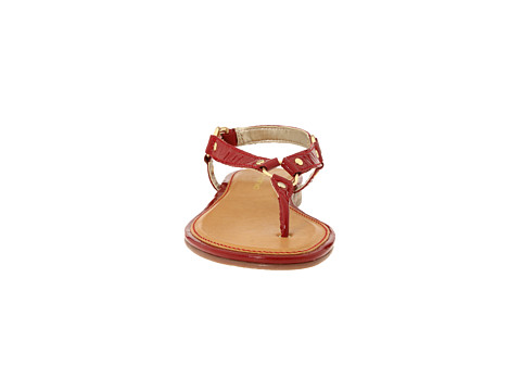 Thong construction with hardware accents.
